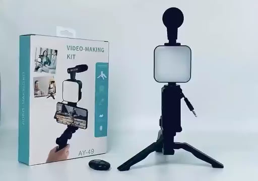 • Take your vlogging and video content to the next level with the AY-49 Vlogger Video Making Kit. This all-in-one kit includes a high-quality microphone, LED fill light, mini tripod, mobile holder, and remote control, making it perfect for shooting professional videos, TikToks, YouTube content, or Instagram reels. Lightweight, portable, and easy to use, this kit ensures crisp audio, clear lighting, and stable shots, giving your videos a polished, professional look. Ideal for beginners and experienced content creators alike.